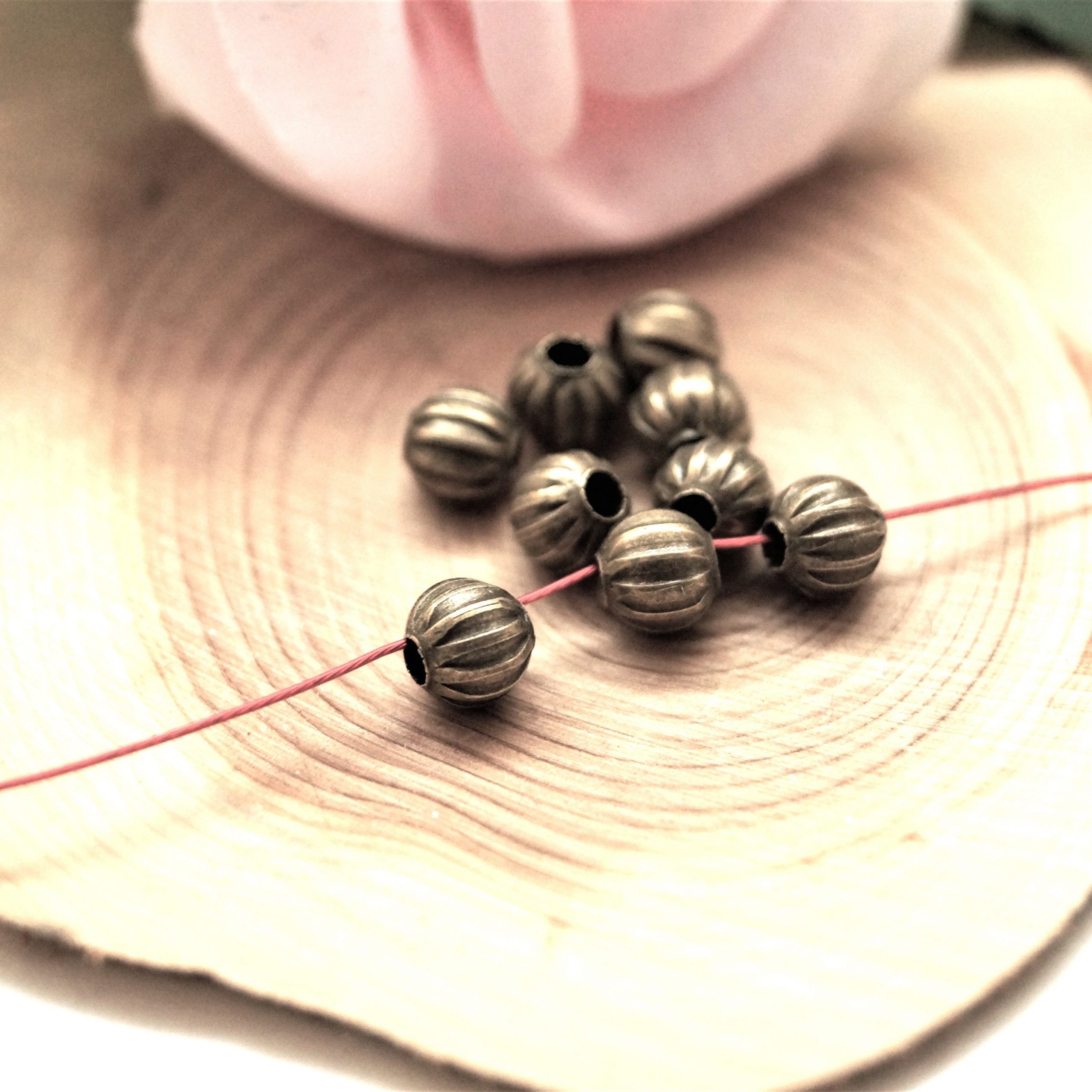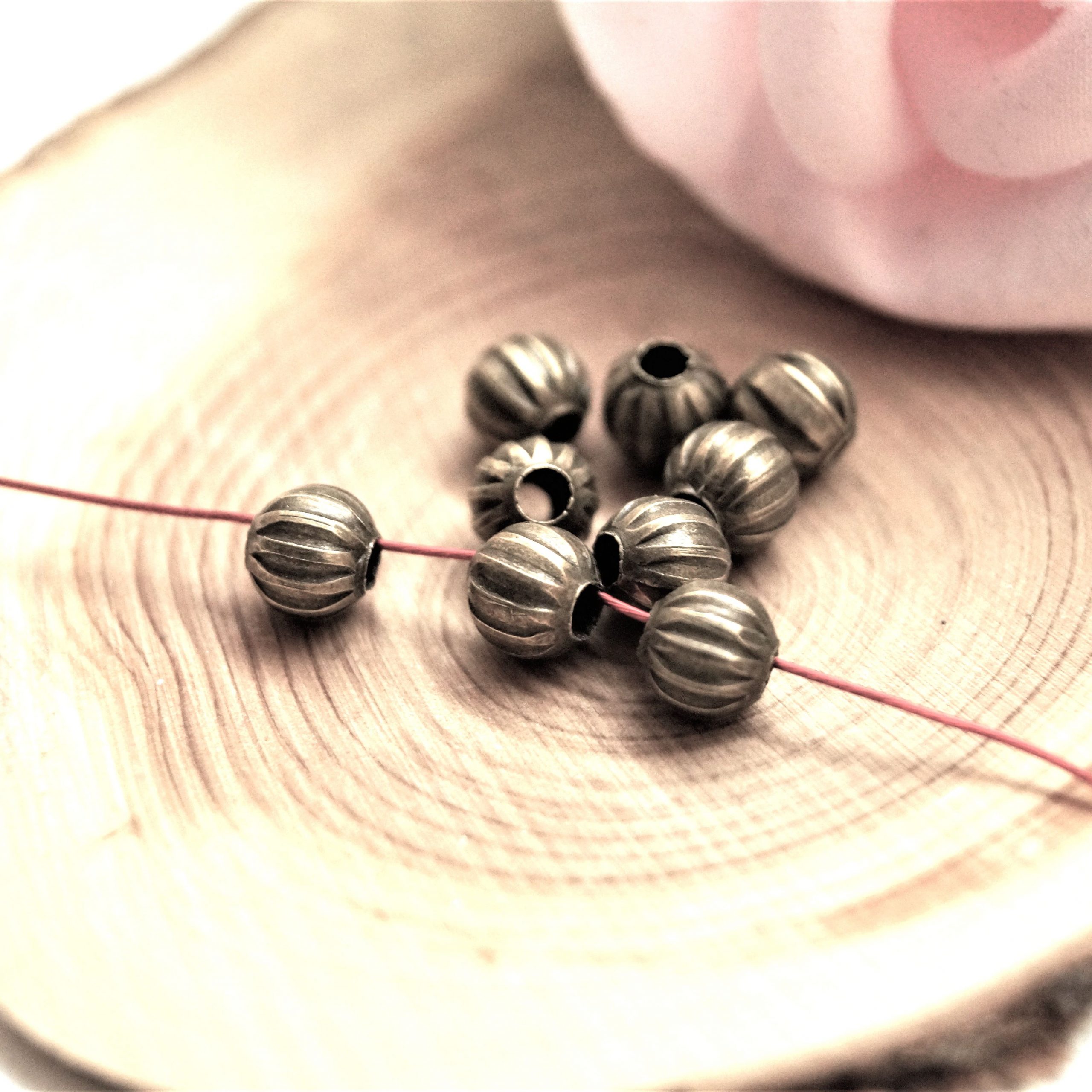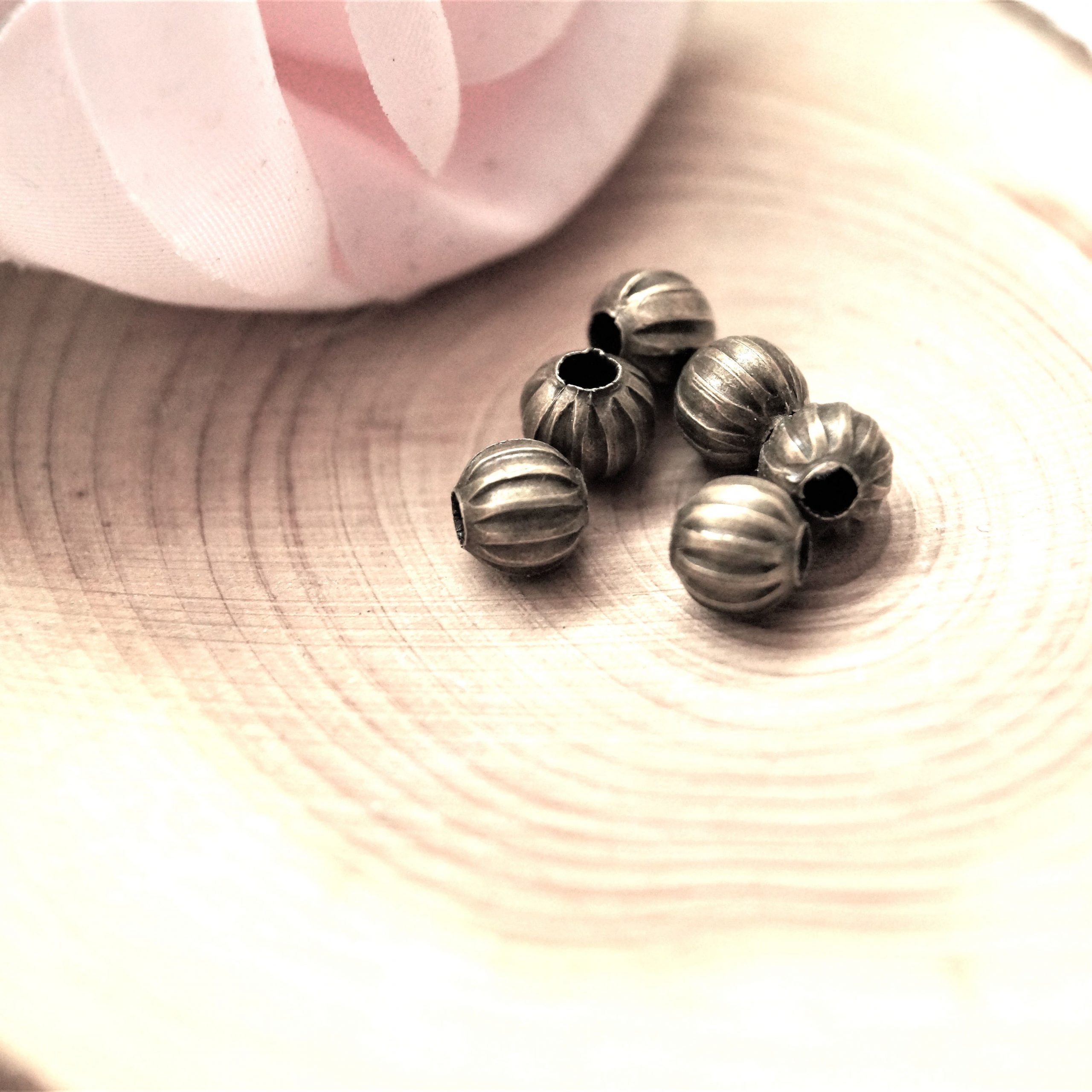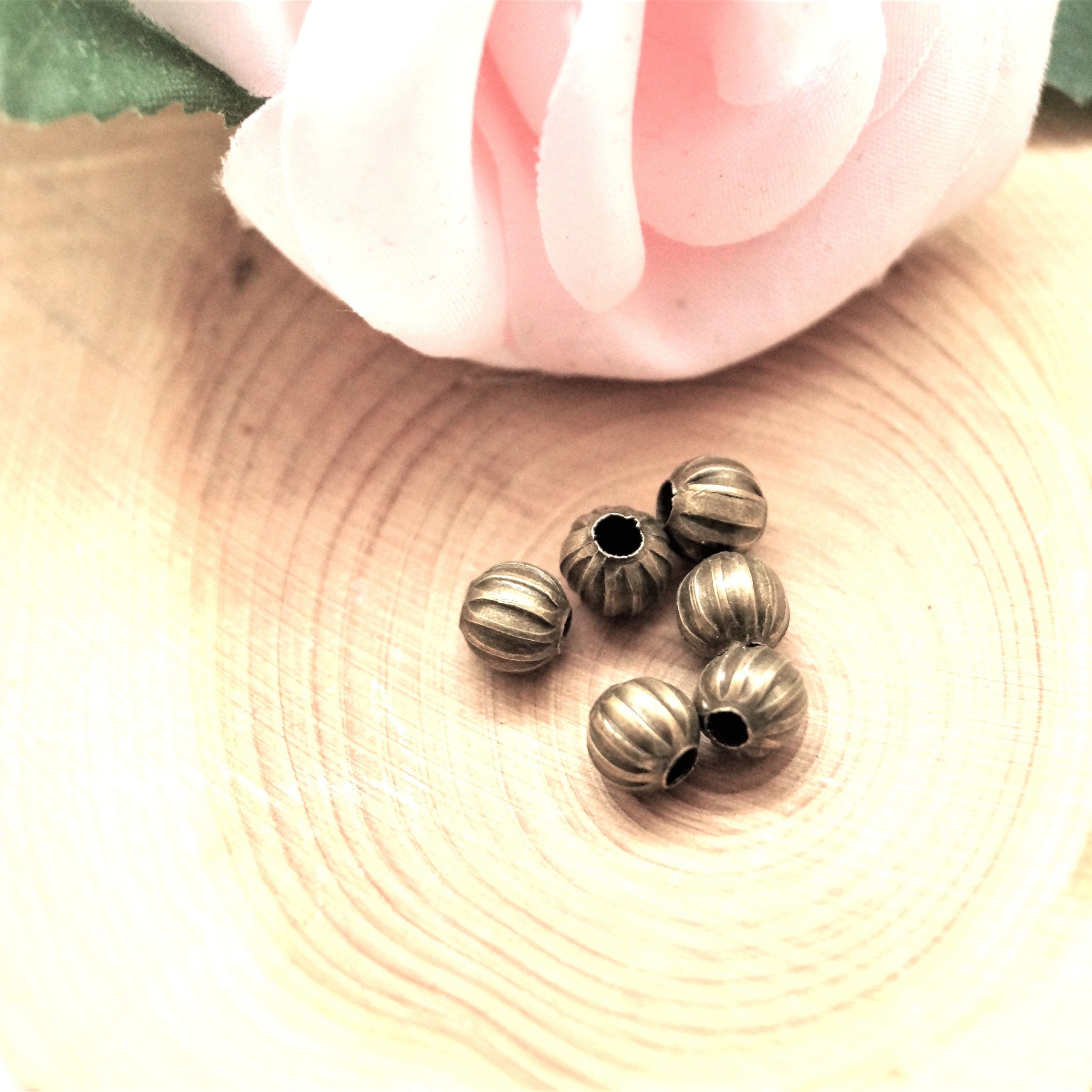 Apportez une touche d’élégance vintage avec ces Perles rondes Citrouilles 6mm bronze vieilli, style rétro, vendues par sachet de 25 pièces