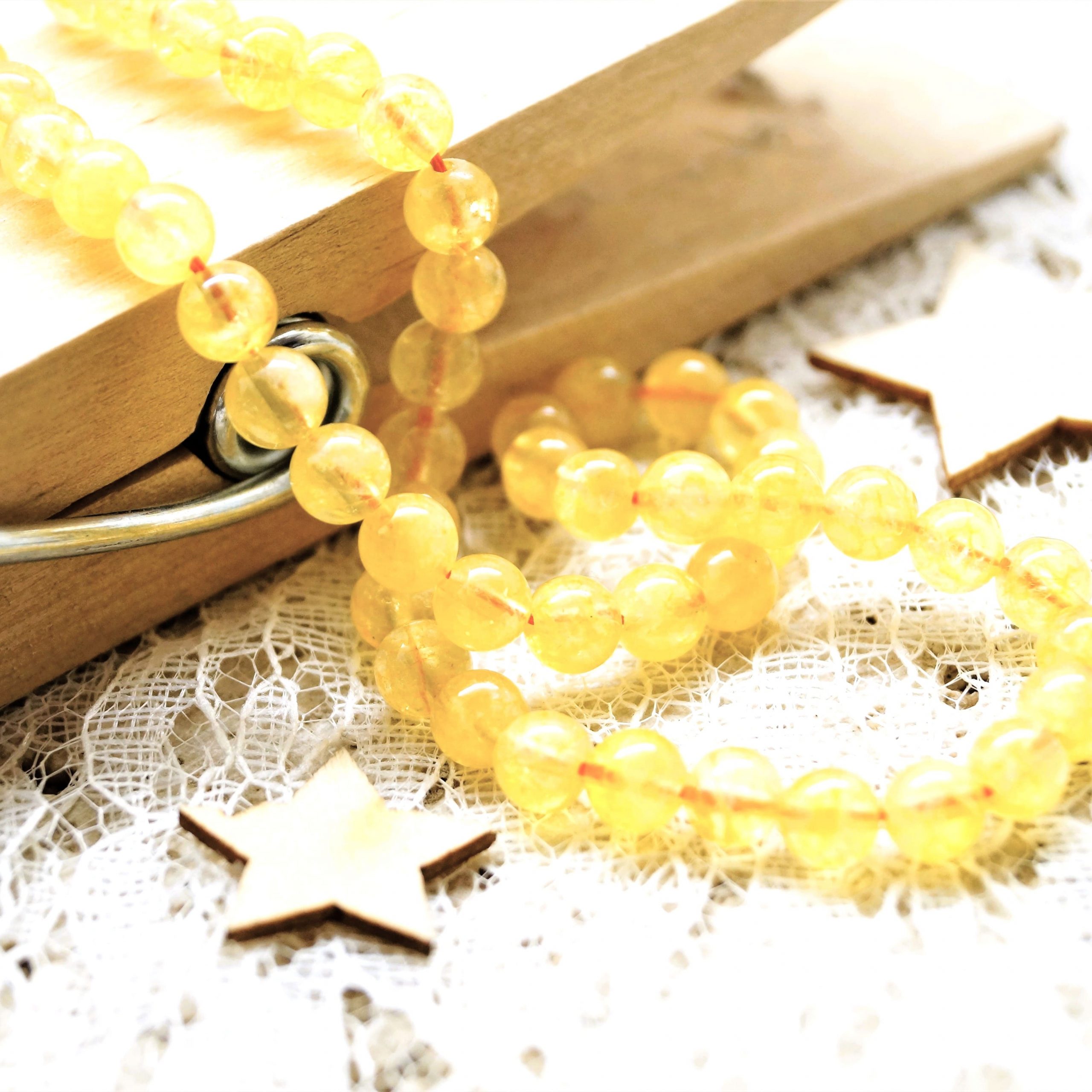 Conseil d’association : créez des contrastes lumineux en associant la citrine au violet de l’Améthyste ou au vert du Péridot. Personnellement dans les dix photos,  je l’ai associé avec l’Amazonite et l’obsidienne